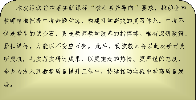 最后,殷陇东老师做了以《立足课堂专注核心素养培养》为主题的讲座,对本次研讨会进行了全面总结。充分肯定了本次研讨会的成果,认为此次研讨会内容丰富、形式多样,为全市物理教师提供了一个良好的交流平台,对提升全县初中物理教学质量具有重要的推动作用。他还对下一阶段的中考备考工作指明了方向,要求各学校要认真落实研讨会的精神,优化教学资源配置,确保中考备考工作有序开展。